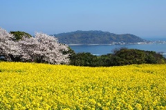 豊かな自然に恵まれた能古島内にある、のこのしまアイランドパークでは、例年3月上旬から4月中旬にかけて、ソメイヨシノやオオシマザクラが見頃を迎えます。4月中旬まで菜の花も開花し、一面を黄色に彩る菜の花のじゅうたんと、美しい桜を一緒に見ることができます。同時期には、リビングストンデージーやポピーの花畑も見頃となり、色とりどりの花を観賞することができます。さまざまな花を愛でながら、春色に染まるパーク内の散策が楽しめます。