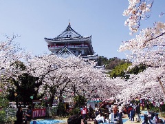 海抜160mの天守閣展望台から、熱海市街地や熱海湾を一望できる熱海城で、例年3月下旬から4月上旬にかけて「桜まつり」が開催されます。期間中、焼鳥や焼そば、日本酒、甘酒などの飲食販売もあります。2026年から熱海城にあわせた時間で終了となり、ライトアップは行われません。