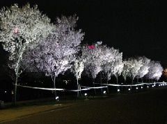 狭山池公園には、狭山池の周囲に約1300本のサクラが植栽されています。見頃にあわせて、日没から22時まで、狭山池北提(約200m)の桜がライトアップされ、幻想的な夜桜を楽しめます。