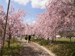 たけべの森公園には100種類1万5000本の桜が植栽されており、例年3月下旬から4月中旬まで咲き誇ります。さまざまな種類が次々と開花し、約1か月にわたり花を楽しめます。中でも藤右衛門桜の小径のヤエベニシダレは見事な桜のトンネルを作ります。園内には開放的な芝生広場もあり、家族でうららかな春の一日を満喫できます。