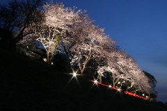 柏市舟戸から流山市深井新田の間を結ぶ、利根運河沿いにある運河水辺公園では、例年3月下旬から4月上旬にかけて桜が見頃を迎えます。夜になると、公園内の一部の桜がライトアップされます。暗闇に浮かぶ桜が運河の水面に映り込み、昼間とは異なる幻想的な光景が楽しめます。