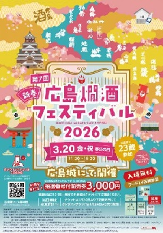 花冷えのする季節に、広島の地酒と料理で春の宴を楽しもうと、「新春!広島燗酒フェスティバル」が広島城本丸下段で開催されます。広島県下23の蔵元の自慢の日本酒が並ぶほか、酒にあうグルメブースの出店もあり、日本酒と料理のペアリングが堪能できます。広島の食材を用いた各店舗の料理と広島地酒が組み合わせることで、より一層、食と日本酒の楽しさを体験することができます。※詳細はホームページ参照