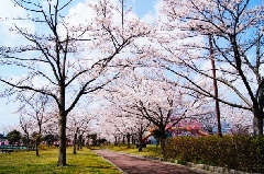 真野宮一帯を中心とする真野公園では、例年4月になると桜が満開を迎えます。約2000本の桜が植栽された、島内随一の花見の名所です。真野宮は、1221年の承久の乱で敗北し、佐渡に流罪となった順徳上皇が22年間過ごした場所です。遺品と伝えられる短刀、硯、扇子、釣花生などが社宝として保管されています。