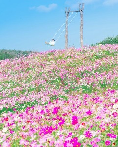 7haの広大な丘に広がる「花の駅せら」では、春から秋の花の開花に合わせて「雲の上の花畑・ネモフィラブランコとフラワーアート」、「初夏のゆりまつり」、「秋の花まつり」が開催されます。春にはビオラやネモフィラ、カルフォルニアポピー、初夏には大輪のゆりが露地に咲き誇ります。秋になると、広大なコスモス畑と、大自然が生み出す朝日と雲海のコラボレーションが楽しめます。園内にはフォトスポットもたくさんあり、フォトジェニックな写真を撮影することができます。
