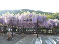 素盞嗚神社(すさのおじんじゃ)の境内にあり、「黒木の大藤」と称される見事な藤の花が、例年4月中旬から満開となります。応永2年(1395年)、後征西将軍良成親王が植栽したものと伝わり、推定樹齢は600余年とされます。見頃にあわせてライトアップが行われ、幻想的な花の姿が堪能できるほか、昼間は地元産品を販売する物産展などが催されます。この藤を愛でに全国から約20万人が訪れます。