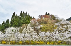 呑山観音寺では例年3月下旬になると、コブシ、桜、レンギョウなど、山全体が花々に包まれます。桜はソメイヨシノのほか、八重紅枝垂桜、山桜を中心に、神代曙や雨情枝垂れといった多様な花が咲き誇ります。特に「福聚桜」と名付けられた本堂脇の古木は、呑山観音寺固有の種で、4月上旬には美しい半八重の白花が目を楽しませます。4月中旬以降は八重桜とシャクナゲとの共演も必見です。大駐車場で開催の「春の観音市(蚤の市)」では日替わりで、手作り雑貨や陶器などが並ぶほか、キッチンカーも出店予定です。近隣の観音坂公園や樹芸の森公園のソメイヨシノ、宮若市の力丸ダムから呑山観音寺までに見える八重紅枝垂れ桜や山桜など、周辺も花見の名所が点在します。