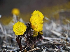 約1.5haの斜面に福寿草が約50万株も自生し、全国有数の福寿草群生地として知られている松本市四賀地区の群生地で、見頃にあわせて「福寿草まつり」が開催されます。例年3月になると、ゆるやかな段丘全体が黄金色の小さな花で埋め尽くされます。太陽のまばゆい光に映える福寿草の花は壮観です。見学は自由ですが、天気の良い日、太陽の射す時間帯の見学をお勧めします。