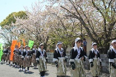 赤穂義士で有名な大石神社で、桜の季節に「春の義士祭」が開催されます。人気の「女人義士行列」や、市内外から参加の各団体による奉祝パレードなどが見どころとなっています。12時過ぎに拝殿前で各団体演舞が催されたあと、13時頃にパレードが神社を出発し、大手門から赤穂城本丸までを練り歩きます。「御塩道中(みしおどうちゅう)」では、観客1000人に200gの天塩が配られます。神社では、祭典で催される薮内流献茶式(11時~)が行われます。