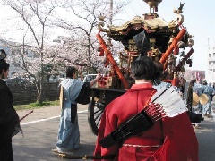 加賀神明宮周辺で、毎年4月第2土日曜に桜まつりが開催されます。各町内会からの山車や獅子舞が通りを練り歩くほか、神社境内付近には露店が立ち並びます。近くの熊坂川の河畔には1kmほど続く桜並木があり、夜にはぼんぼりが灯されて、夜桜見物も楽しめます。