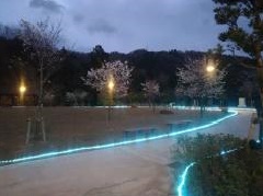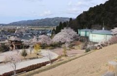 松岡地区を見下ろせる小高い丘の上にある松岡公園では、例年4月になると約100本の桜が見頃を迎えます。桜が咲く中、公園から一望できる景色も楽しめます。3月下旬から、桜が咲いている間は、イルミネーションも実施されます。