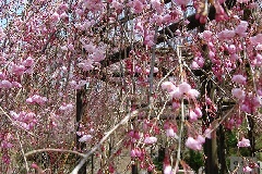 西国薬師霊場第二十六番札所の長安寺は、例年4月上旬になると桜の花に覆われます。ソメイヨシノやヤマザクラ約50本に加え、境内に接する公園にも立派な枝を広げた桜があります。古くより多くの俳人や歌人を惹きつけた名勝の地である寺には、句碑などが建ちます。桜越しに遠く福知山の市街地も望めます。