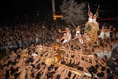 気多若宮神社の例祭で、国の重要無形民俗文化財に指定されています。古式ゆかしい「御神興行列」を中心に、“動”の「起し太鼓」と“静”の「屋台曳行」により、盛大な時代絵巻が繰り広げられます。19日から屋台が町内を曳行するのを皮切りに、夜には、数百人のさらし姿の裸男が担う櫓に大太鼓を載せ、太鼓を打ちならしながら町中を巡行する「起し太鼓」が行われ、深夜まで続きます。期間中は、屋台曳行やからくり人形、子供歌舞伎なども催され、町中が祭一色となり賑わいます。2016年に、ユネスコ無形文化遺産登録された「山・鉾・屋台行事」37の祭礼のひとつです。