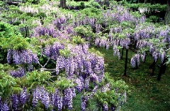 20品種約200本もの藤の木が植栽されている春日大社萬葉植物園で、美しい藤の花が見頃を迎えます。立ち木造りの形式のため、見上げることなく目線で花を観賞できるのが特徴です。香りを広げる中国の「麝香藤(じゃこうふじ)」やピンク色の濃い「昭和紅藤」などの珍しい藤は早咲き、長い房の藤や「八重黒龍藤」などは期間の中頃から終盤に咲き揃います。