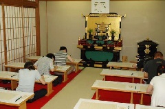 仏教の中心的なお経である「般若心経」を、一字一句、清書します。心身を集中させ、雑念を払い、心を込めて浄書することで、心の安らぎを得る実践修行を体験することができます。※諸行事により実修が行われない場合もありますので、事前に確認ください。