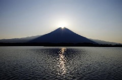 富士山の全景を真東に見ることができる田貫湖では、4月20日の前後と8月20日の前後のそれぞれ約1週間、富士山頂から朝日が昇り、光輝くダイヤモンド富士を見ることができます。ここでしか見ることができない、美しい景観が広がります。