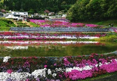 豊かな自然と美しい棚田の風景が広がる周南市大道理では、例年4月上旬から下旬にかけて、棚田の法面に咲く10万本の芝桜が見頃となります。赤、ピンク、白、紫などの色鮮やかな芝桜を楽しみながら、自由に散策することができ、なかでも展望所から眺める景色は圧巻です。開催期間にあわせ、軽食コーナーや売店も出店します。