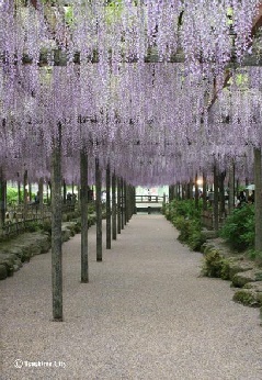 かつて「藤浪の里」と称されたほどの藤の名所、津島市にある天王川公園では、例年4月中旬から下旬にかけて藤の花が見頃を迎えます。公園内には、長さ275m、面積約5000平方mにおよぶ藤棚があり、甘い香りに包まれながら、風にそよぐ壮麗な藤が観賞できます。