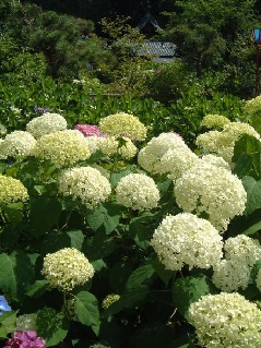 僧行基(ぎょうき)が開山したと伝わる実谷山極楽寺では、初夏になると境内や裏山にかけて、数万本のアジサイが見頃となります。行基が「極楽へゆく人の乗る紫の雲の色なるあじさいの花」と詠んだことにちなみ植えられたとされ、アジサイの名所として東の鎌倉院、西の奈良寺と並び称され、「あじさい寺」の愛称で親しまれています。30種類以上1万3000株の中にはブルースカイやアナベルのほか、他所ではなかなか見ることができない珍しい品種もあります。