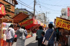 ほうそう(天然痘)の神様として知られる床浦神社の祭典は、芸南地方に春本番を告げる祭りとして昔から親しまれています。盛大に行われる「大植木市」や「大福まき」をはじめ、露天や各商店の売り出しは、この祭りの名物となっています。