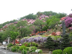 祐徳稲荷神社の外苑(東山公園)では、例年4月中旬から5月上旬にかけて、一目5万本といわれるツツジの花が斜面に咲き乱れます。下から仰ぎ見ると、ツツジの花に圧倒されるかのような景観が楽しめます。
