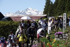 白馬村の歴史あるウォーキングイベント「塩の道祭り」は、毎年5月4日に開催されます。2026年のコースは、水芭蕉の群生地として知られる落合自然園を出発し、里山に咲く春の花々や残雪の残る北アルプスの絶景を眺め、切久保諏訪社や観音原石仏群などの歴史を感じながら、終点の白馬グリーンスポーツの森まで、約9mのコースを歩きます。誰でも無料で参加でき、道中では地元の振る舞いが楽しめます。ゴールすると完歩賞(参加賞)がもらえます(在庫がなくなり次第終了)。