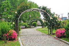 金沢市にある姉妹都市公園では、例年5月下旬から6月上旬にかけて、春のバラが見頃を迎えます。姉妹都市公園は、金沢市と姉妹都市提携している世界の7都市(国名:ロシア、中国、韓国、アメリカ、ブラジル、ベルギー、フランス)を紹介する公園です。園内にある「ベルギーのゲント市」のコーナーには、ゲント市が「花の都市」と呼ばれていることにちなんで、約200本のバラが植栽されています。アーケードや花壇などに、色とりどりのバラが咲き誇り、芳香が漂う中、春のバラ観賞を楽しむことができます。