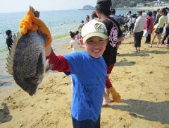 伊勢神宮内宮への献上品「おんべ鯛」と、名物「ふぐ」(10月~3月)が有名な篠島で、魚のつかみ取り大会が開催されます。海の管理釣り堀「篠島釣り天国」では、釣りも満喫できます。新鮮な海の幸を提供する宿も多いので、宿泊もおすすめです。