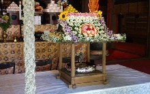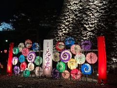 高知城追手門から天守までのメイン通路沿いに、生け花の大作が並ぶ「花回廊」が創出されます。生け花を演出する照明や灯篭のほか、大樹、桜を照らす照明などが設置され、会場全体が灯りで彩られます。これにあわせて、普段は夜に入館できない高知城の天守が夜間開館されます。