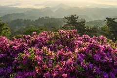 標高654mの弥高山中腹にある弥高山公園では、例年4月中旬から5月上旬にかけて、約10万本のツツジが咲き誇ります。満開のツツジが全山を覆い、山肌が赤やピンクに染まる様子は圧巻で、大勢の観光客で賑わいます。4月18日は「弥高山星空ピクニック」が行われ、星空の下で自然を満喫することができます。南は瀬戸内海の島々、北は中国山地までもが見渡せる、山頂展望台からの360度のパノラマも必見です。