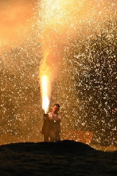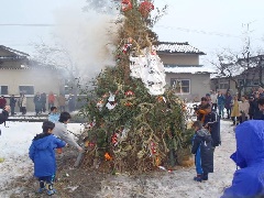 妙高杉ノ原スキー場特設会場で、家内安全、商売繁盛、五穀豊穣を祈願する「ダイナマ…