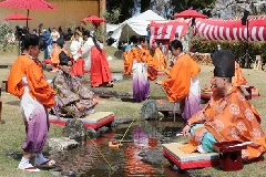 平安の雅を現代に再現する「ふちゅう曲水の宴」が行われます。小川の流れに、にごり…