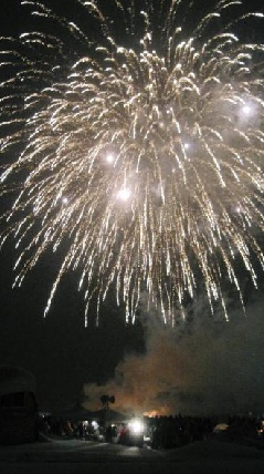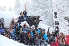 妙高杉ノ原スキー場特設会場で、家内安全、商売繁盛、五穀豊穣を祈願する「ダイナマ…