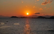 日間賀島の東部にある海水浴場。美しい朝日の姿を楽しめる。例年、夏にはさまざまなイベントも開催される。島の西部にはサンセットビーチがあり、こちらからはきれいな夕日が望める。