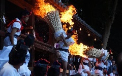 かつては神聖な場所として信仰された生駒山の麓にある古社。創立年代は定かではないが、古くからこの地に鎮座しており、正倉院文書にも記載が見られることから、奈良時代からすでに朝廷との関わりがあったと考えられている。平安時代の「延喜式」では、往馬坐伊古麻都比古(いこまにいますいこまつひこ)神社として、官弊大に列せられた。鎌倉時代に、二柱の産土神に五柱の八幡神が合祀され、現在に至る。境内を覆う鎮守の杜は、太古から変わらぬ姿で、県の天然記念物に指定されている。毎年10月に、県指定無形民俗文化財の「火祭り」が行われる。