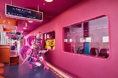 日本の“kawaii”文化の先駆者、アーティスト増田セバスチャンのプロデュースにより、2025年に京都・梅小路エリアにオープンした、食とアート体験を楽しむ未来列車型エンターテインメント・レストラン。廃車サンダーバードと廃線高架をアップサイクルした建物で、1号車はインスタレーション・アートとコース料理が同時に楽しめる「FUTURE BIRD」、2・3号車は飲食エリアとなっている。改札のようなエントランス、ピンクを基調としたボックスシート、ユニークでインパクトのある料理など、非日常で映えるシーンを体験でき、新たな観光&カルチャースポットとして、訪れる人の感性を刺激する。※フューチャーイマジネーションコースは事前予約が必要(詳細はホームページ参照)
