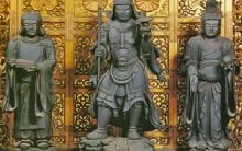 用明天皇2年(587年)、聖徳太子によって建立された毘沙門天王の総本山。標高437mの信貴山の中腹に位置し、毘沙門天王が日本で最初に出現したという伝説が残る。太子が寅の年の寅の日、寅の刻に現れた毘沙門天を感得し、そのご加護で物部守屋を倒し、仏教の広まる礎を築いたとされる。境内に巨大な張り子のトラがあることで有名。