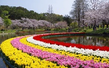 1300本の桜と50万球のチューリップの庭園