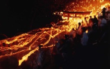 新宮市内の千穂ヶ峰の南に位置し、熊野三山の大神様が初めてお鎮まりになった神社。神倉山の中腹にある天磐盾(ゴトビキ岩)を、御神体として祀っている。毎年2月6日には、白装束の上り子が松明に御神火を灯し、神社の石段を駆け抜ける勇壮な火祭り「御燈祭り」が行われる。火祭りは、国の重要無形民俗文化財に指定されている。※参拝に関して時間の制限はないが、暗くなると危険なため、昼間の参拝がおすすめ。