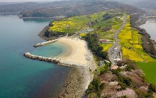 長崎鼻にある白砂が敷き詰められた人工海水浴場で、例年、多くの人々が海水浴を楽しむ。近隣に四季折々の花が咲く岬があり、なかでも九州最大規模のひまわり畑は、8月中旬になると見頃を迎える。花畑の周りには、オノ・ヨーコ、チェ・ジョンファなど世界的アーティストのアート作品が点在しており、散策をしながらアートを鑑賞できるスポットとして知られる。