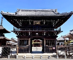 天慶2年(939年)創設の日蓮宗の寺。開運出世の三面大黒天が祀られ、正面が衣食…