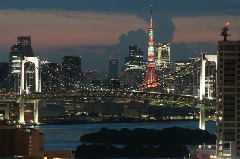 ガラス張りで門のような形状が特徴的なテレコムセンターの、21階にある展望室。レ…