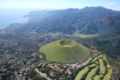 大室山の麓から標高580mの山頂までを、片道約6分で結ぶ登山リフト。山頂からは…