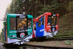 最大斜度25度の急勾配をケーブルカーで約6分、標高831mの御岳山駅へ一気に行…