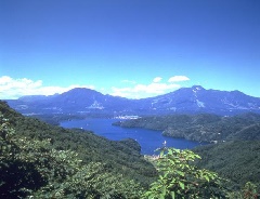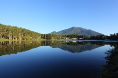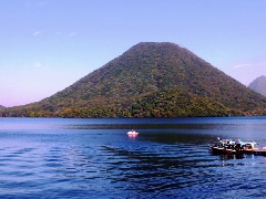 榛名火山の活動によって生まれた山上の湖で、中央火口丘の榛名富士や外輪の山々を映…