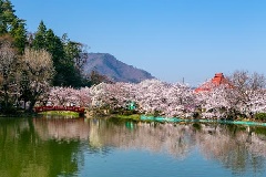 「日本さくら名所100選」に選ばれた花見スポット。竜ヶ池を中心に160本、園全…
