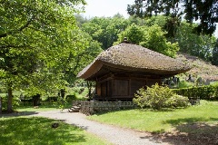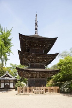 空海の創建と伝わり、県下最古の木造建築とされる薬師堂。素朴ながら重厚な萱葺屋根…