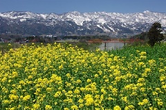 「菜の花畑に入り日薄れ」で始まる唱歌「おぼろ月夜」の情景が残る公園。千曲川と関…