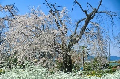 岩村町の史跡「吉田川経塚」には大きなシダレザクラが1本あり、例年3月下旬から4…