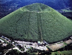 大室山の山麓から観光登山リフトが運行し、山頂まで気軽にアクセスできる。山頂では…