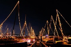 江の島ヨットハーバーのヨットやセンタープロムナードを鮮やかなイルミネーションで…